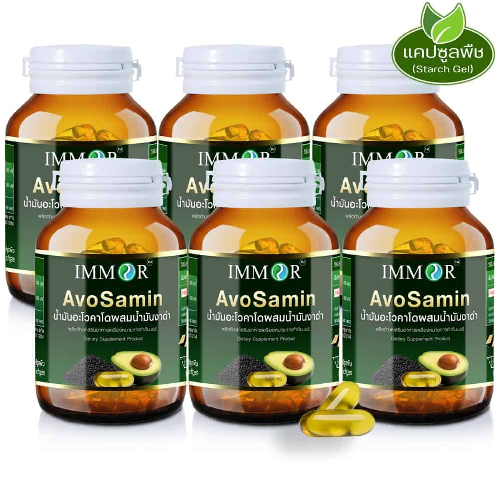 AvoSamin น้ำมันอะโวคาโดผสมน้ำมันงาดำ IMMOR 1,000 มก. (6 กระปุก)